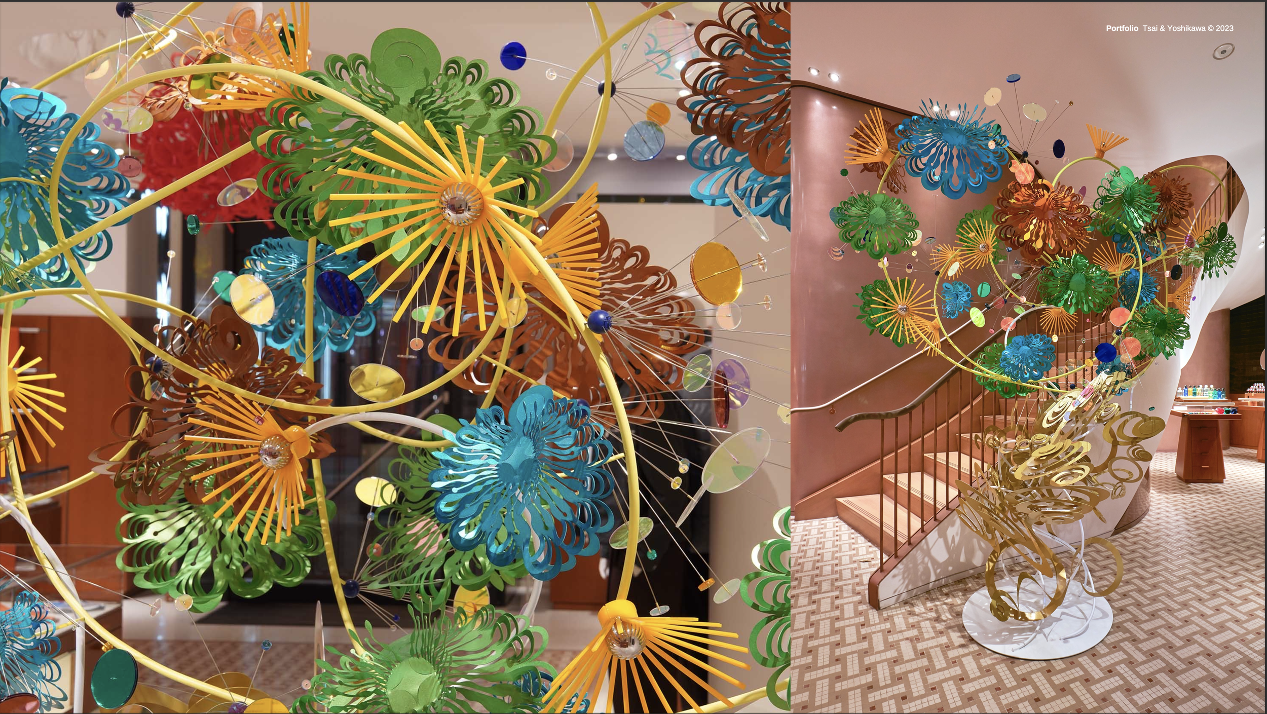 LOVE TOGETHER - LOVE AT HEARTBEAT, 2019 Foyer mixed-media sculptures steel, stones, neoprene, felt, Perspex, wood, light bulbs 20 x 4.5 m 2020 JING AN KERRY CENTRE ‘Love Together’ exhibition, Shanghai, China